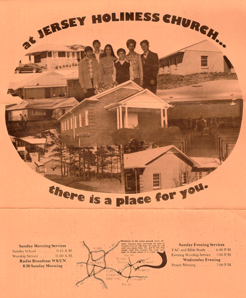 Under a tent, back in 1910, the first Holiness meeting in Walton County was held in Monroe, Georgia. The Oak Grove Fire-Baptized Holiness Church (present day Jersey Holiness Church) was organized in the home of Hamp Brooks in August of 1910.